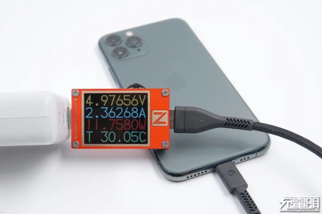 对iPhone11 Pro 进行充电,功率为4.97V 2.36A 11.75W,成功握手5V电压档位。