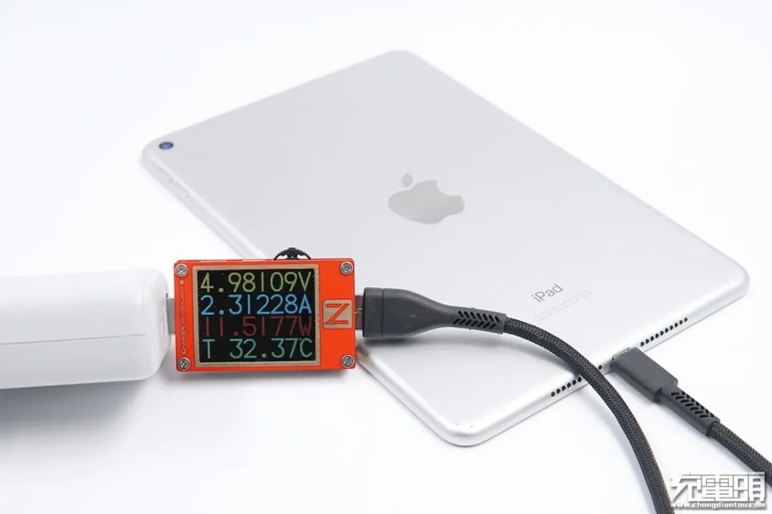 首先为iPad mini 5进行充电,功率为4.98V 2.31A 11.51W,成功握手5V电压档位。