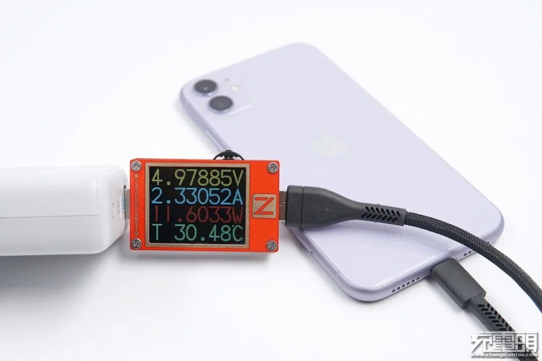 对iPhone11 进行充电,功率为4.97V 2.33A 11.6W,成功握手5V电压档位。
