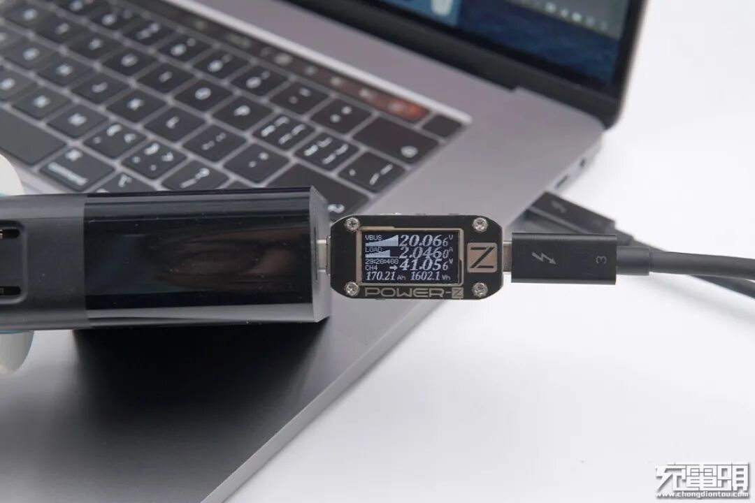 Macbook Pro 16支持USB PD快速充电协议,使用USB-C对Macbook Pro 13充电,功率为20.06V 2.04A 41.05W。