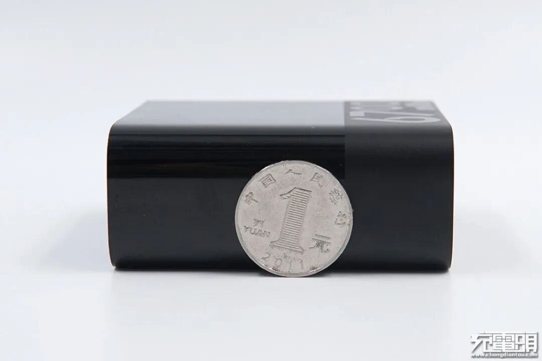 将一元硬币靠在ZMI双模充旁边,后者比前者略高一些。
