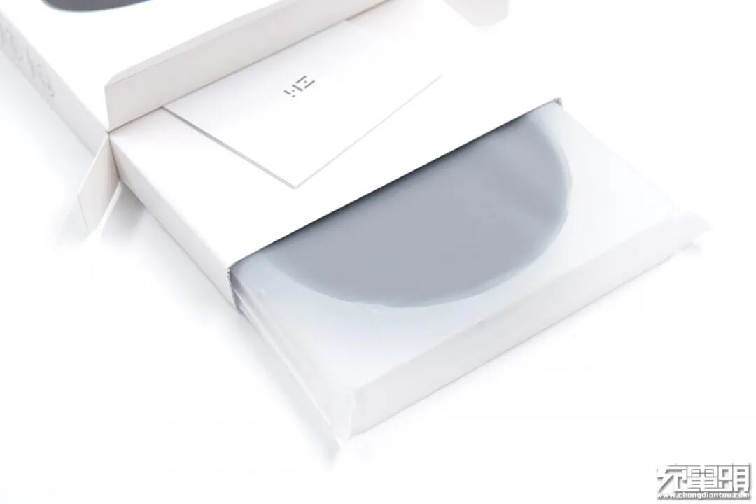 打开包装,可以看到内部还有一层硬壳纸盒一层塑料包裹着产品,黑色的ZMI无线充就在托盘中。
