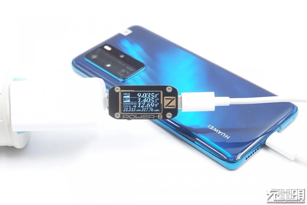 华为 P40 Pro 支持SCP、FCP和 USB PD快速充电协议,使用USB-C为华为 P40 Pro充电,功率为9.03V 1.40A 12.69W。