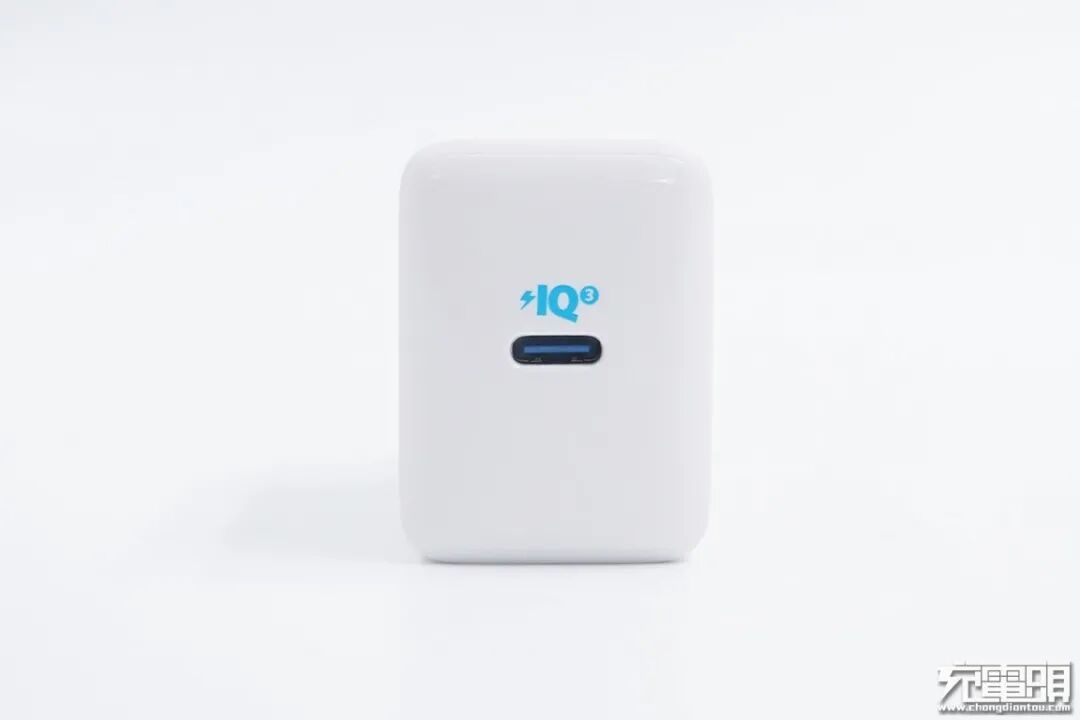 输出端配有一个USB-C接口,接口舌片为安克蓝色,接口旁边印有IQ3蓝色字样,意为支持PowerIQ 3.0。