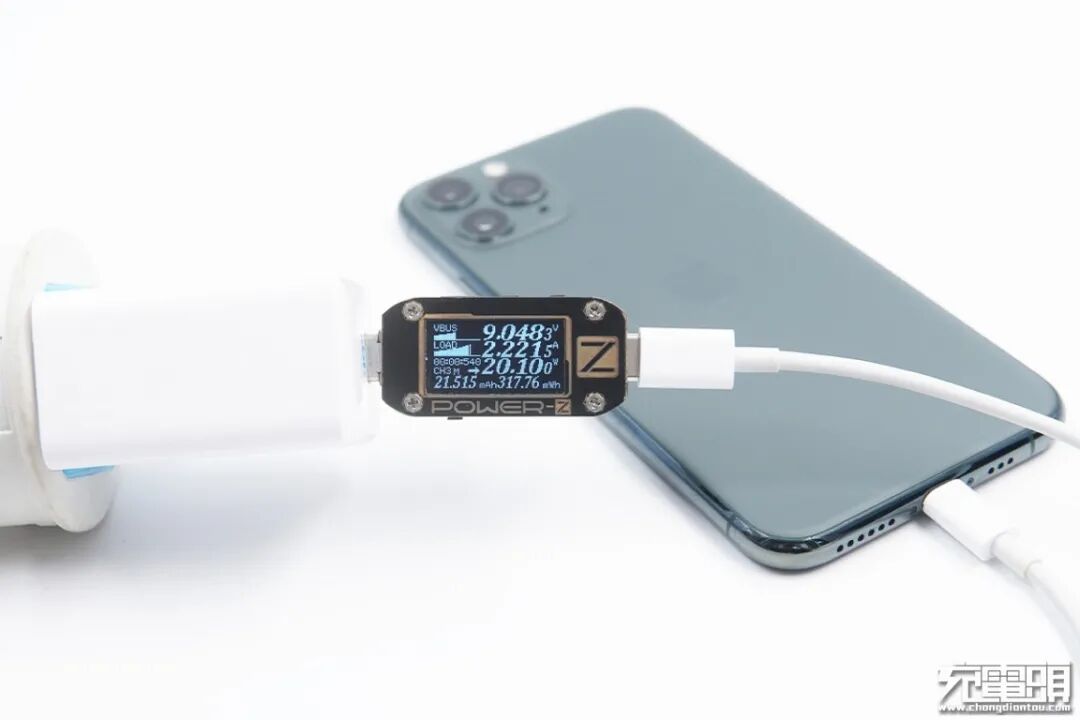 iPhone11 Pro 支持USB PD和Apple2.4A快速充电协议,使用USB-C为iPhone11 Pro充电,功率为9.04V 2.22A 20.10W。