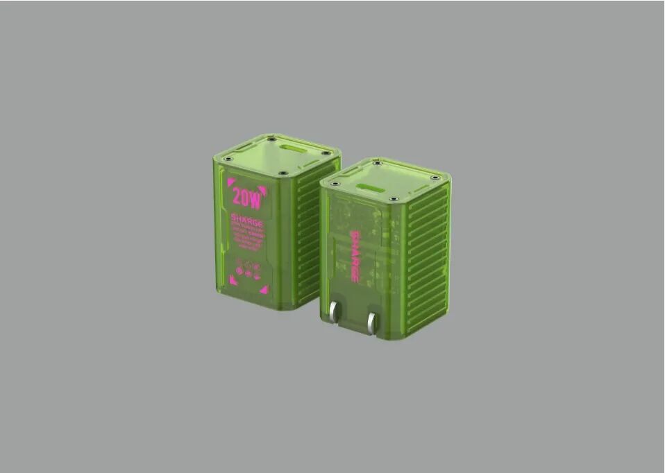 赛博朋克的半透明设计,机身印有“SHARGE”logo,以及参数信息。
