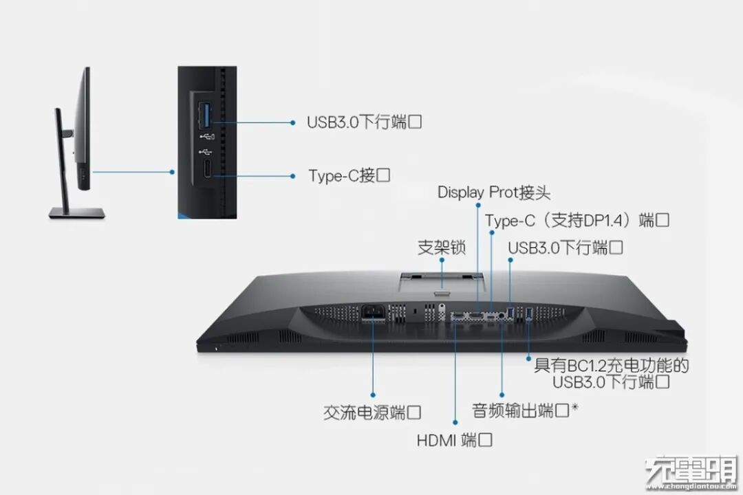 按照功率区分,支持90W PD快充的有U4919DW、U3419W;带有双USB-C支持90W、15W充电的有U2720QM、U2520DR;支持65W PD快充的有U2719DC、U2721DE、P2720DC、P2419HC;另外还有一款不支持充电输出的S2719DC,下面是他们各款介绍,并且在文末制作了表格,方便大家查阅对比。