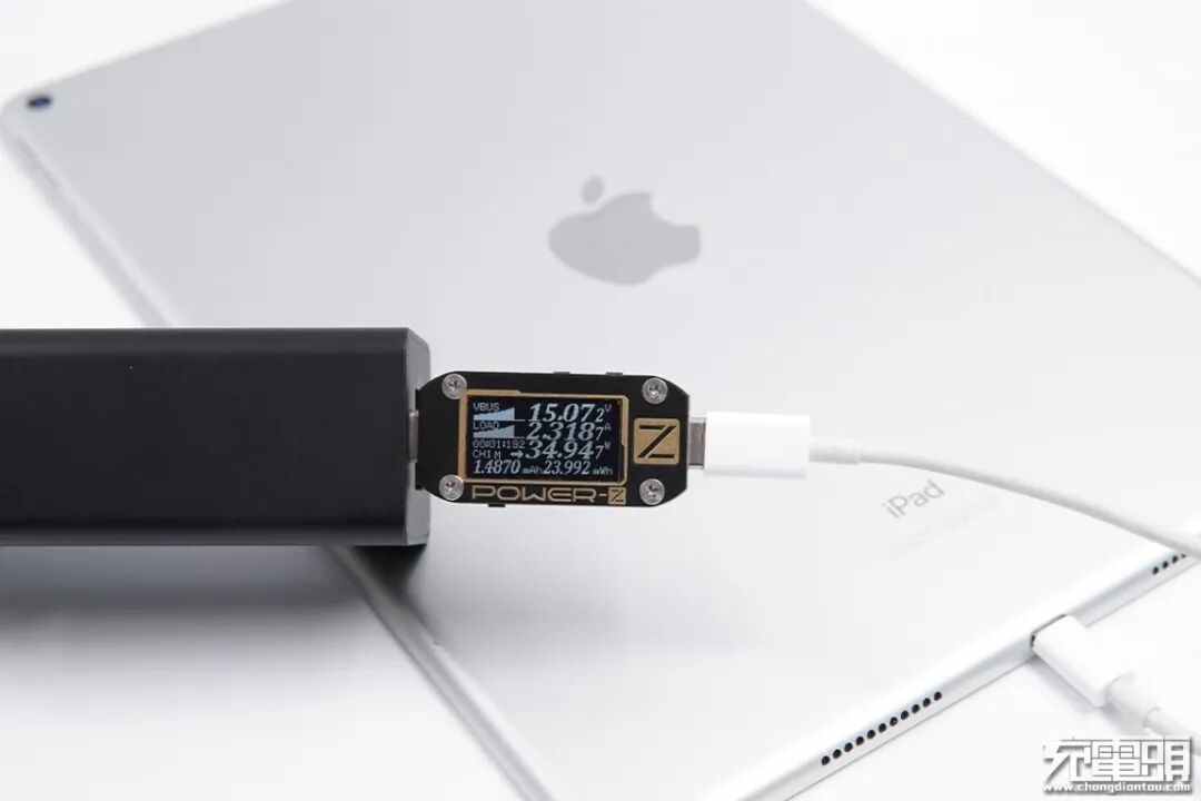 iPad mini 5支持Apple 2.4A和USB PD快速充电协议,使用USB-C对iPad mini 5充电,功率为15.072V 2.3187A 34.947W。