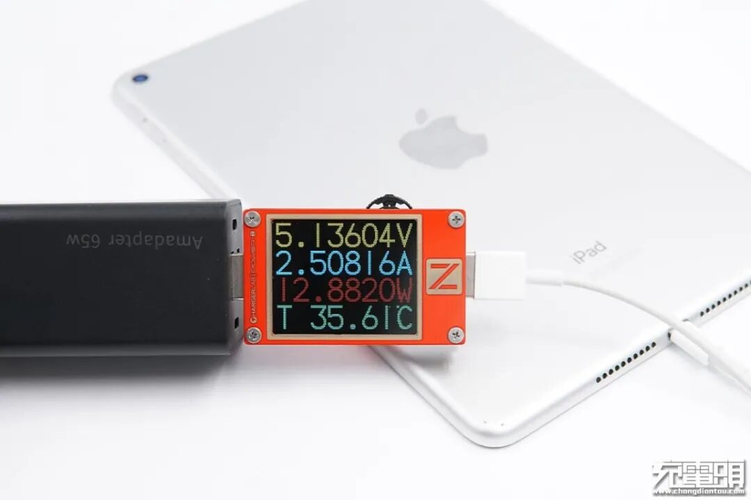 iPad Air 3支持Apple 2.4A和USB PD快速充电协议,使用USB-A对iPad Air 3充电,功率为5.13V 2.50A 12.88W。