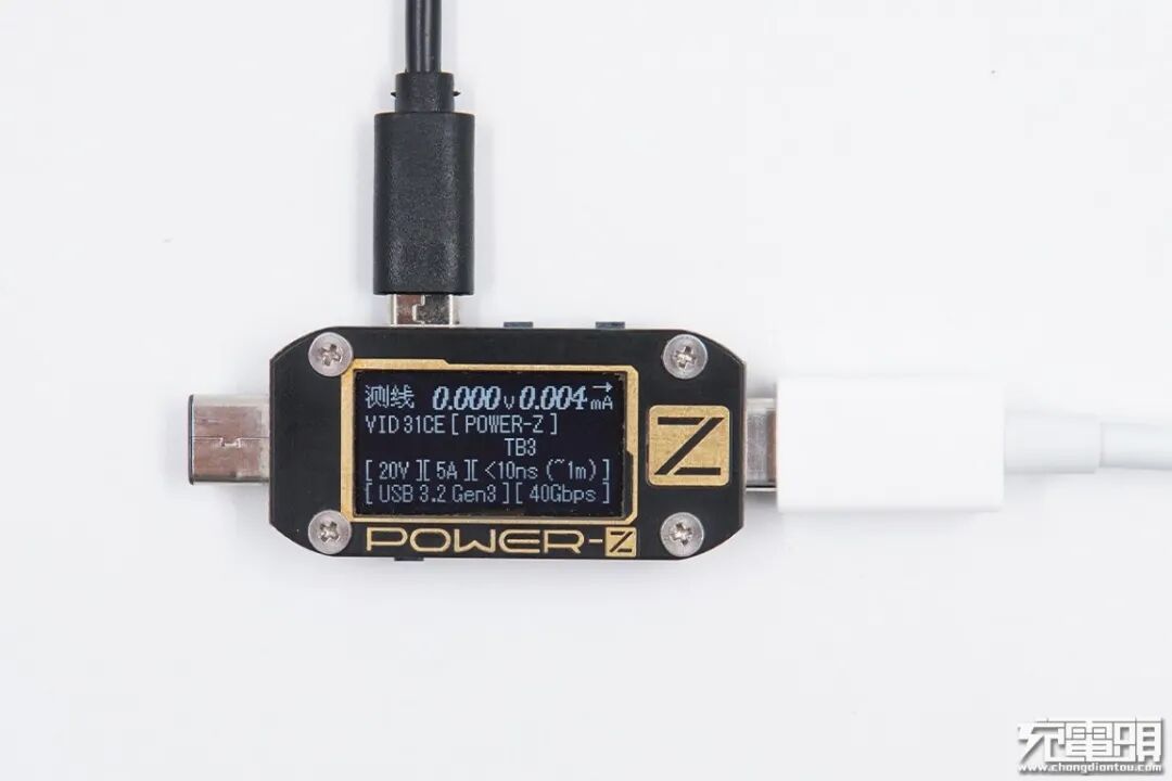 使用ChargerLAB POWER-Z KM001C对线材进行检测,实测支持20V 5A 100W的充电功率,支持40Gbps的数据传输,传输标准为USB3.2 gen3 。