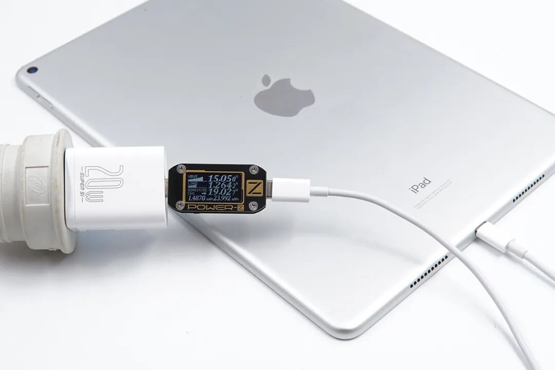 iPad Air 3支持Apple 2.4A和USB PD快速充电协议,使用USB-C对iPad Air 3充电,功率为15.05V 1.26A 19.02W。