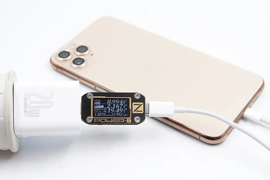 iPhone11 Pro Max 支持USB PD和Apple2.4A快速充电协议,使用USB-C为iPhone11 Pro Max充电,功率为8.99V 2.16A 19.49W。