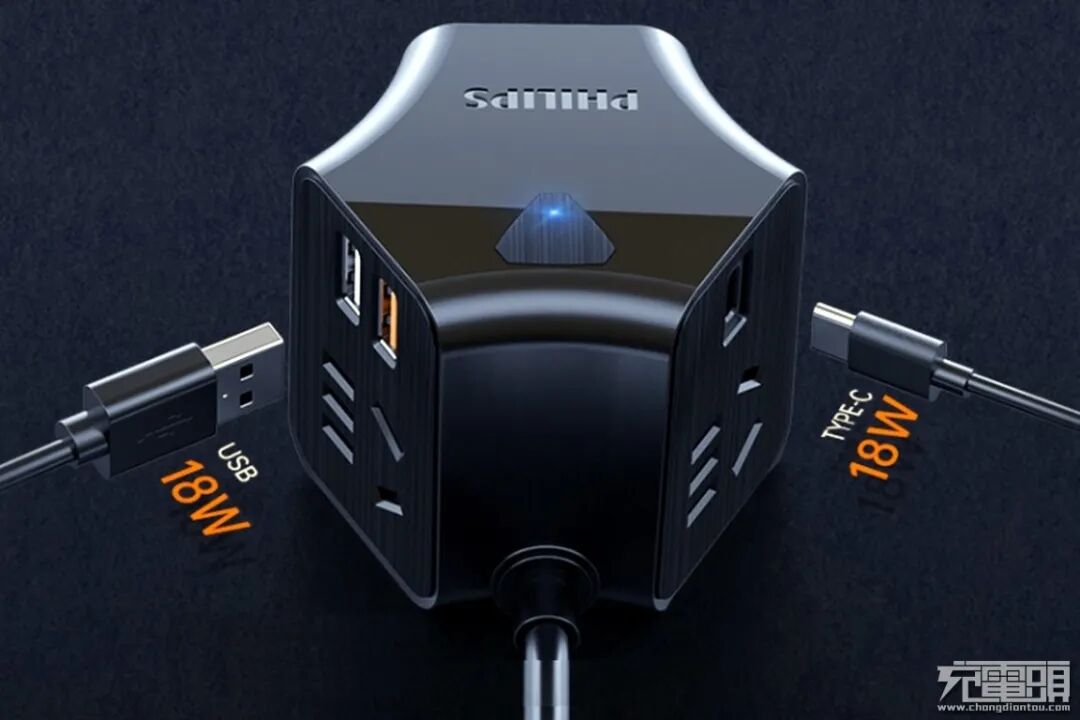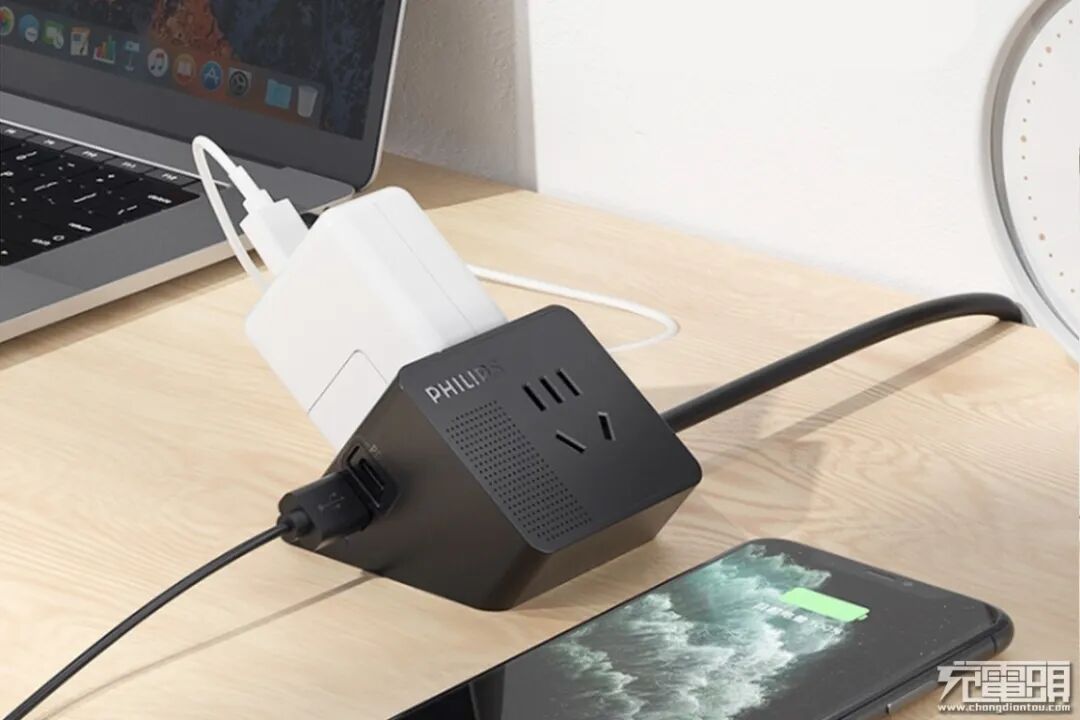 除超大功率摩天轮PD插座外,飞利浦还推出了只有“半高”尺寸的半魔方PD快充插座,占据更小的桌面空间,支持1A1C 18W PD快充。