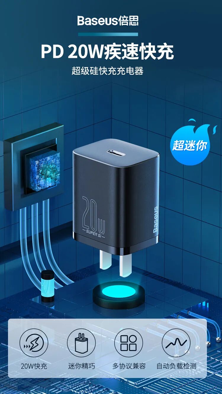 为了迎接即将到来的苹果iPhone 12新机,知名3C消费电子品牌Baseus倍思近期就发布了一款苹果20W充电器:倍思Super Si超级硅快充充电器。