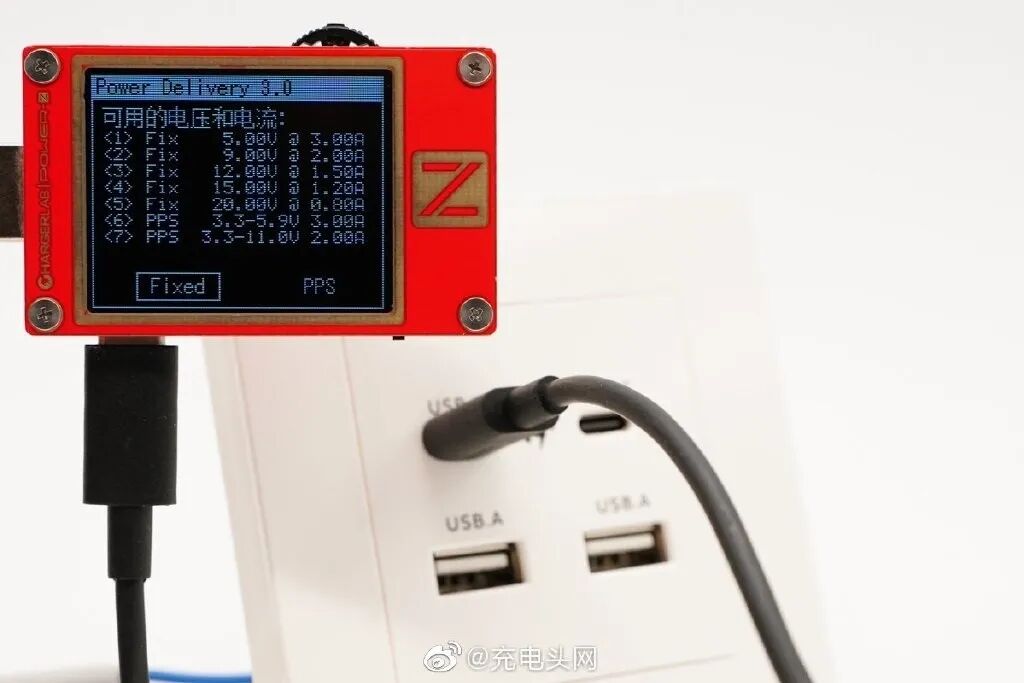 / 12V1.5A / 15V1.2A / 20V0.8A五个固定电压档,另外还带有两组PPS电压,3.3-5.9V3A /