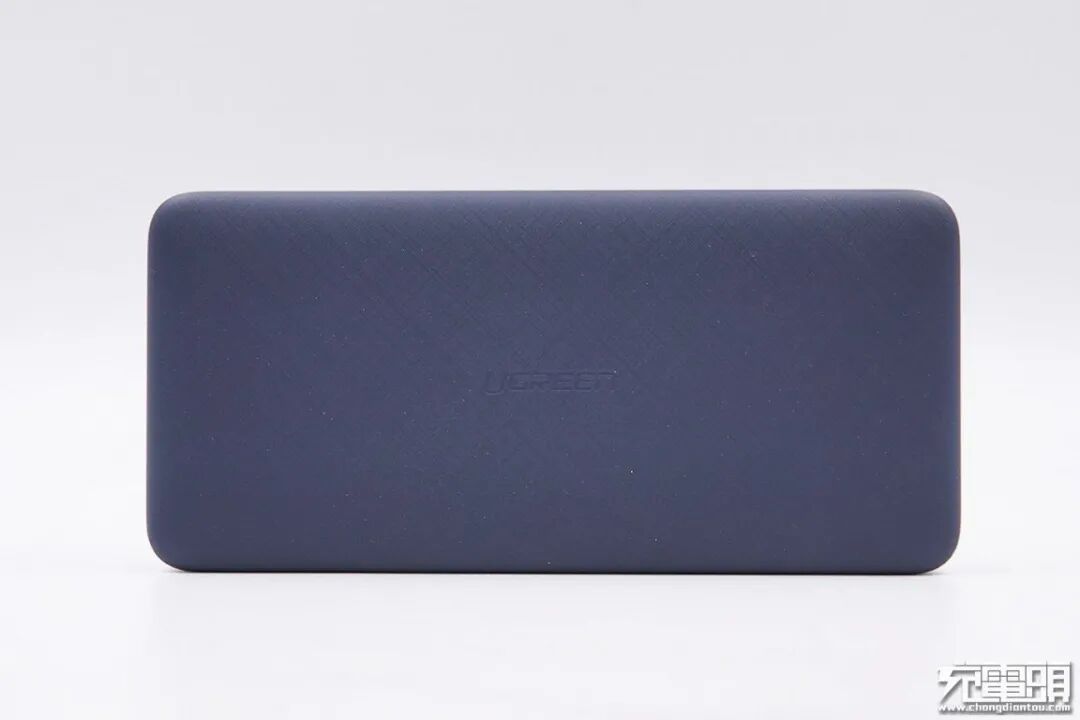 绿联PB163双向快充移动电源机身壳采用PC加ABS阻燃材质,机身壳正面进行晒纹处理,其余面则进行喷砂处理手感细腻,四角为弧面过渡。电源正面呈爵士蓝中心凹印“UGREEN”品牌logo,晒纹处理不仅起到装饰作用而且也改善手感。它带有20000毫安大容量电芯,可以为iphone11提供4.7次续航,长途旅行无忧。