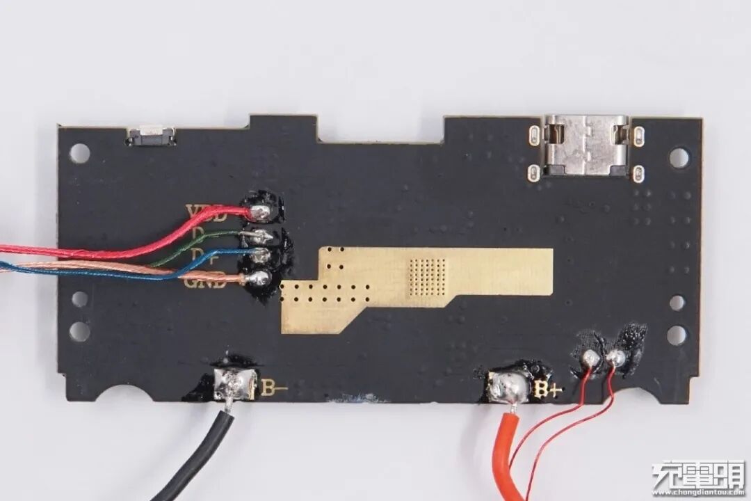 USB线缆的充电宝内部从铅酸电池变成使用锂离子电池,能量密度数倍提升。MicroUSB自带线充电宝虽然带有线缆,但整体结构与其他充电宝接近,线缆通过2芯或者4芯连接至PCB中,2芯为纯粹的5V供电型,4芯则带有D+D-识别甚至可以提供QC快充。
