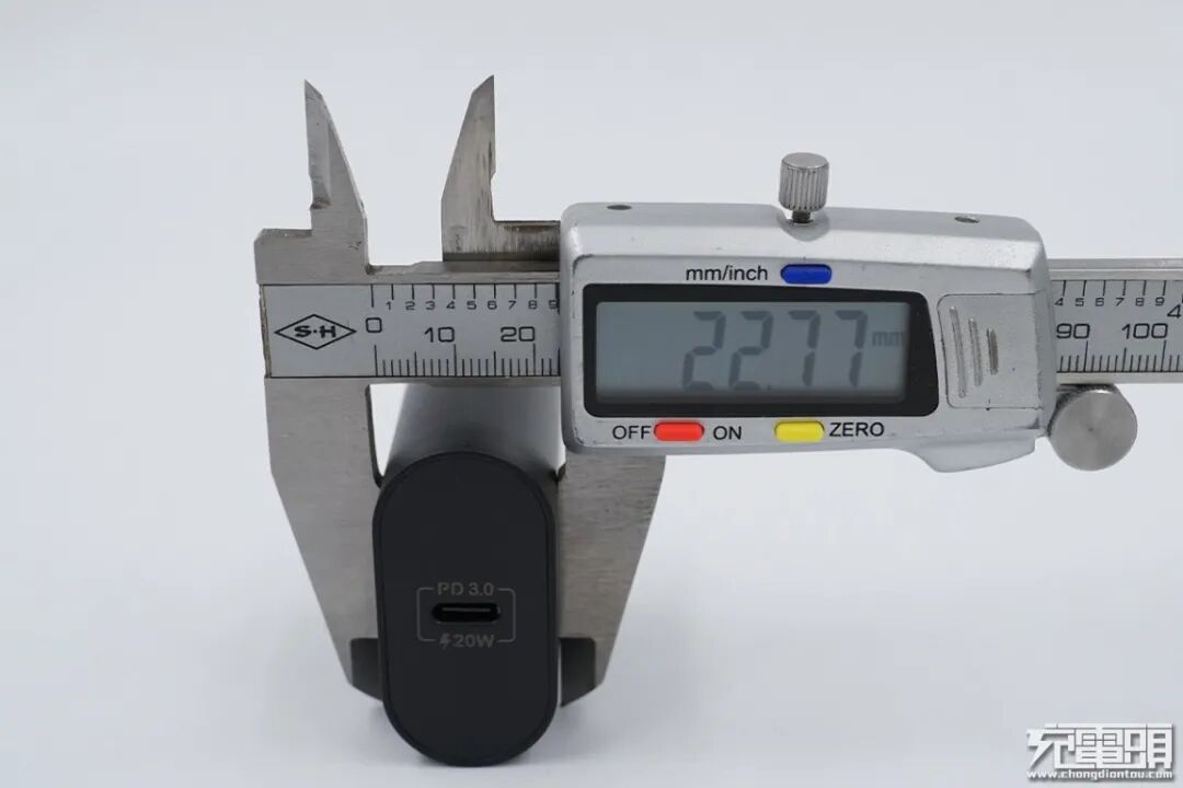 和苹果20W充电器大小直观对比,整体高一些,但是厚度会薄一些。