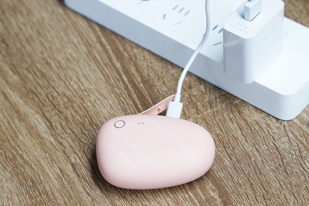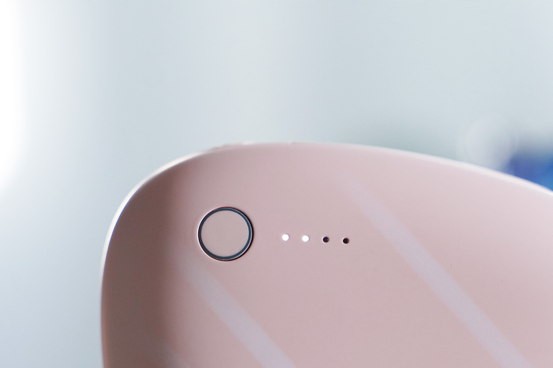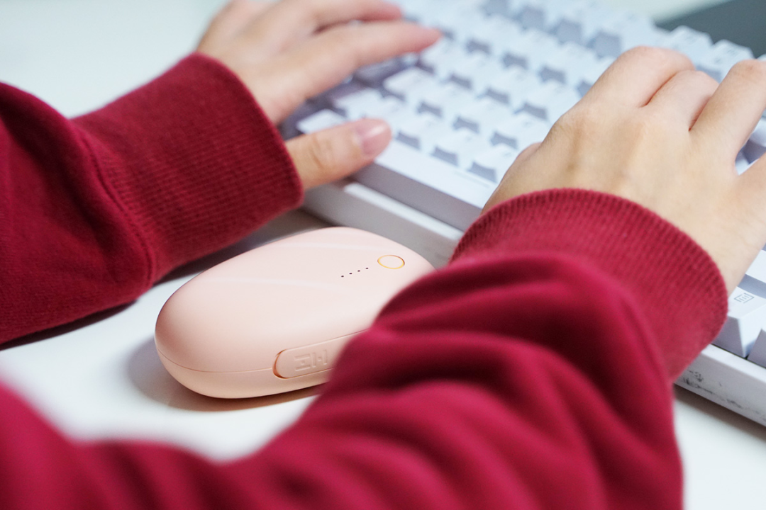 暖手宝整体非常小巧,胭脂粉的配色也为暖手充电宝增添了几分可爱的气息。虽然体积小巧,但却带有足够的电池容量。