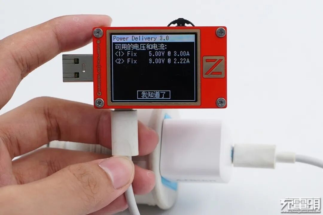 读取USB-C接口的快充协议,实测支持Apple2.4A、QC2.0、QC3.0、以及PD3.0快充协议。