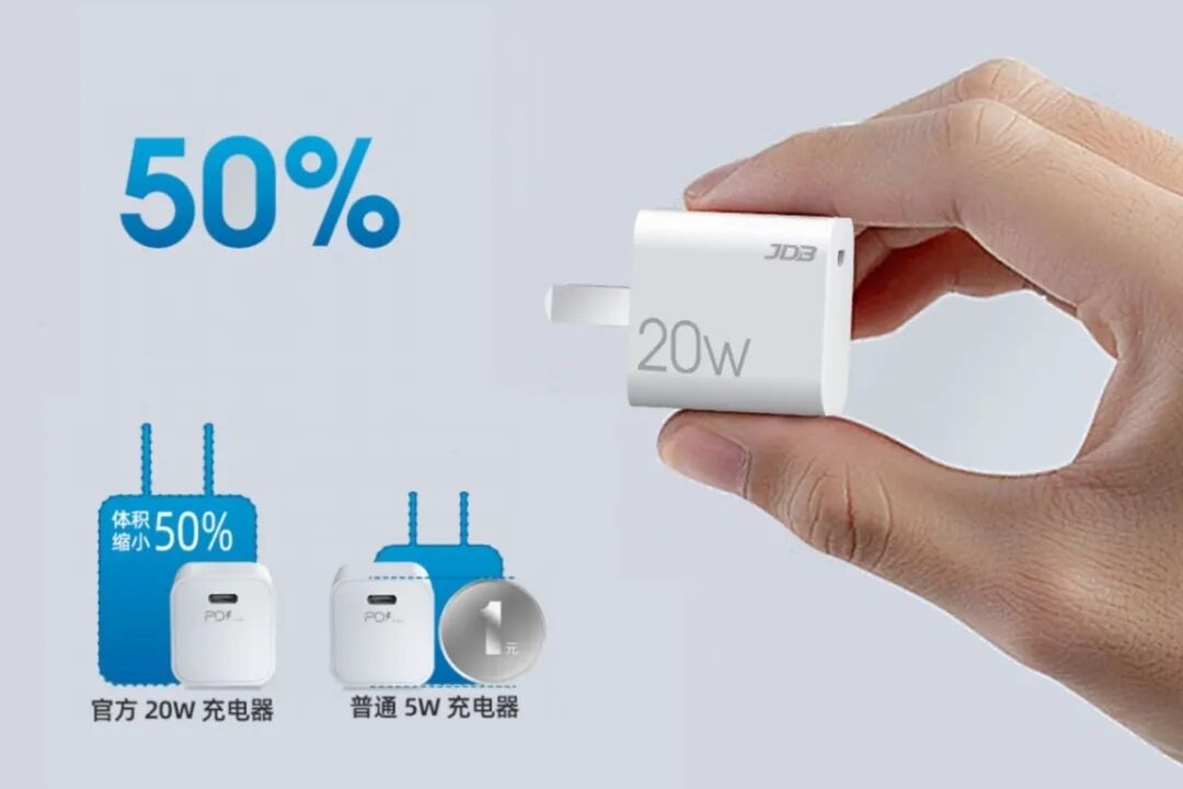 iPhone 12系列支持20W PD快速充电,JDB 20W PD充电器可以很好地适配iPhone快充,符合苹果30分钟充入50%的性能需求。