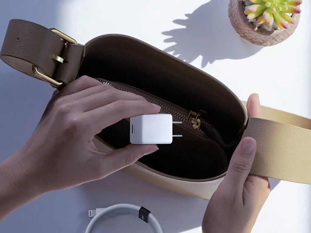 内部采用三维排布技术,通过元器件立体堆叠造就了27.5mm * 27.5mm的高密度体积,与苹果5W充电器接近,比市面普通18W充电器体积小一半,重量只有35g外出可轻松放入口袋。