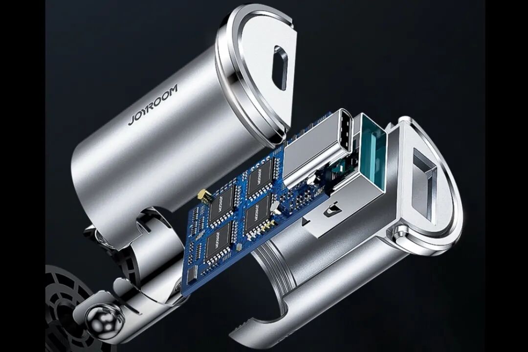 相比起传统傻大粗的车充,机乐堂20W mini车充采用高密度设计,娇小的三围体积只有23.45mm * 42.5mm,如何保障小巧的同时方便取放?机乐堂为这个mini车充设置了可活动的半圆双拉环结构,需要抽出时可作为拉环使用方便取出车充。提手部分可折叠收纳齐平于壳体,