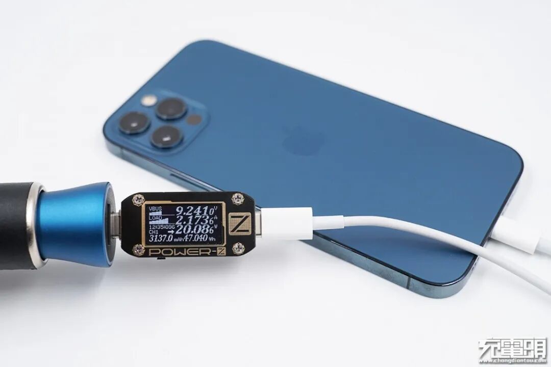 iPhone12 Pro 支持USB PD和Apple2.4A快速充电协议,使用Baseus倍思 1A1C 双20W车充的USB-C为其充电,功率为9.24V 2.17A 20.08W。