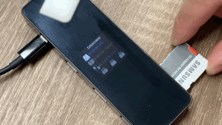 DOCKCASE将显示屏带到了拓展坞上面,并在自家的这款产品中体现了出来,将拓展坞连接至笔电之后显示屏亮起,第一看就是DOCKCASE的“D”品牌Logo标识,然后进入到主界面。