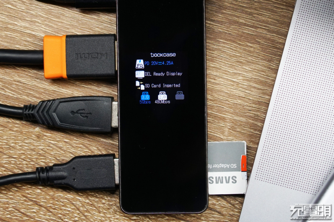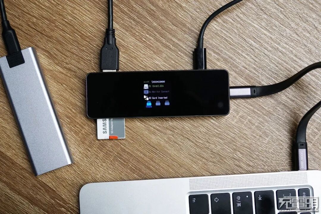 伴随着笔电向轻薄化发展的大趋势,一些体积较大的接口从笔电机身上移除已经是必然的现象,所有的功能都可以由一个USB-C类型物理接口来完成。在以上的大条件下拓展坞就成为了一个必不可少的产品。目前市面上已经出现了数不清的品牌以及拓展坞品类,每个产品都有各自的特点,要想在泛滥的拓展坞市场上做到脱颖而出首先在产品上就必须要足够有吸引力。这是DOCKCASE推出了这款产品。DOCKCASE可视化Type-C扩展坞在外观上平平常常,和市面上其他常规的拓展坞相同,但这款产品的主要特点在于内部。