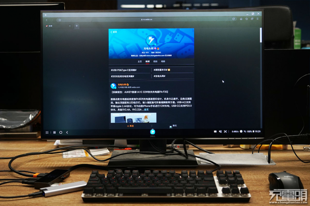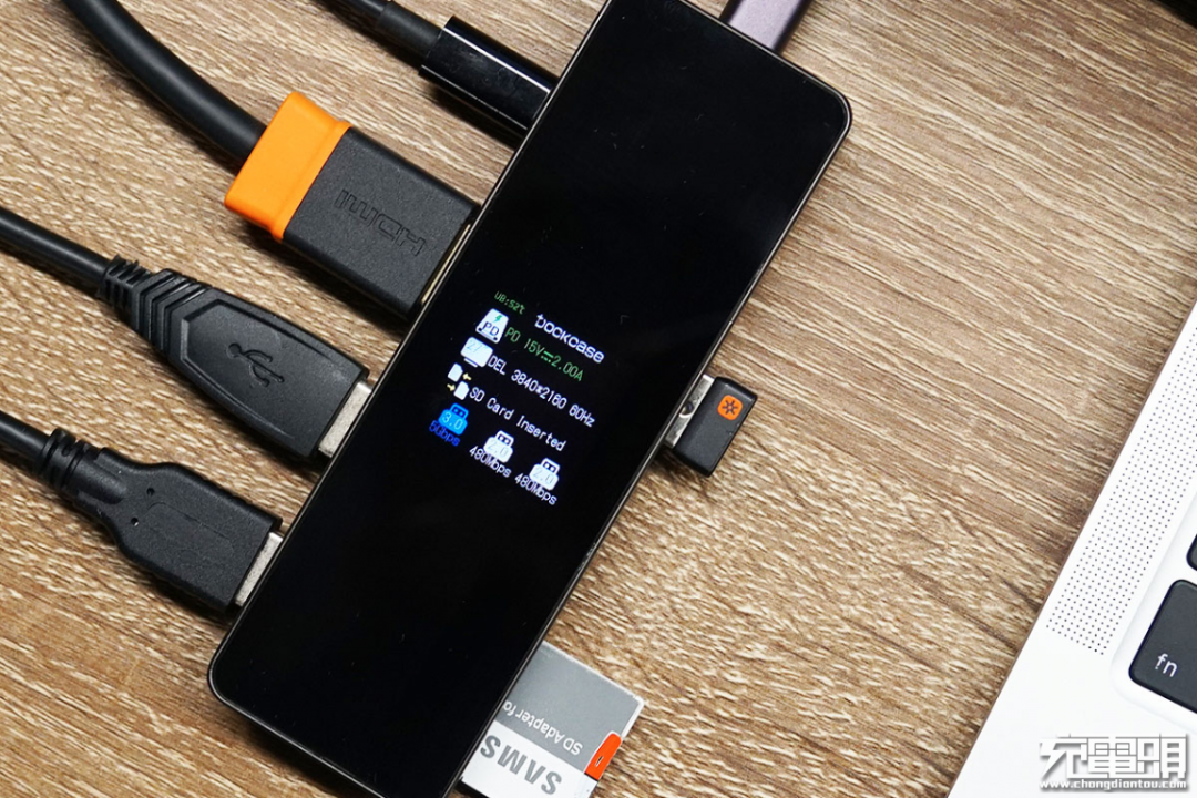 将拓展坞连接到充电器,显示屏上出现了具体的快充档位,随后刷新至所有项目显示界面。