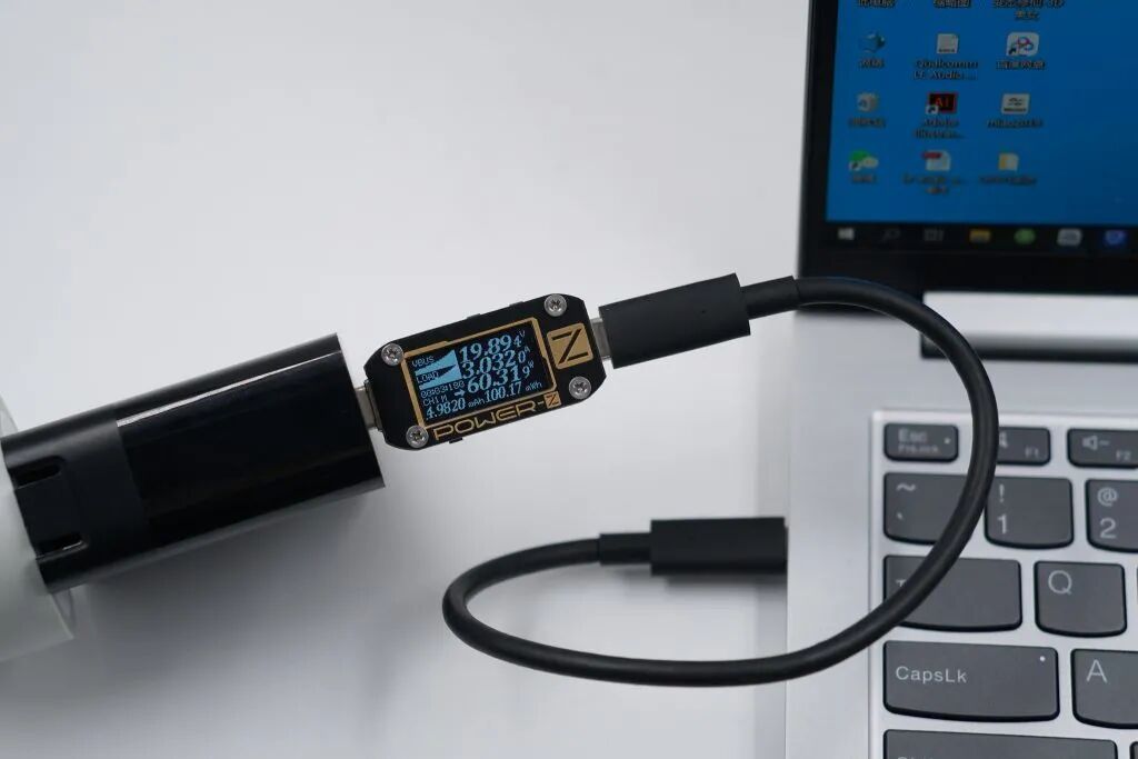 联想官方介绍,两个USB-C物理接口均为雷电4接口,均支持40Gbps的数据传输速度,充电方面支持高达100W的PD快速充电。实测使用原装65W电源适配器为联想小新Pro14充电时的功率可以达到19.62V 3.05A 59.90W,此时处于USB PD快速充电状态。