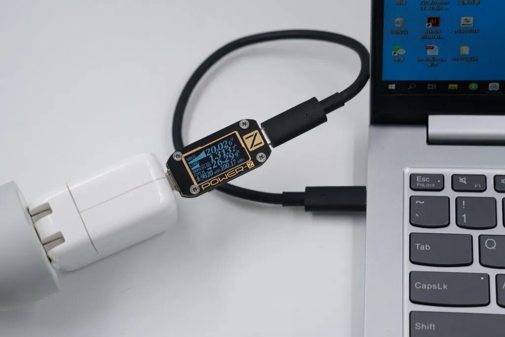 先看个代表,苹果30W PD充电器支持支持PD2.0充电协议,拥有5V3A 9V3A 15V2A 20V1.5A四个输出档位,使用苹果30W PD充电器为联想小新Pro 14笔记本充电,功率为20.02V 1.31A 26.29W,效果还行。