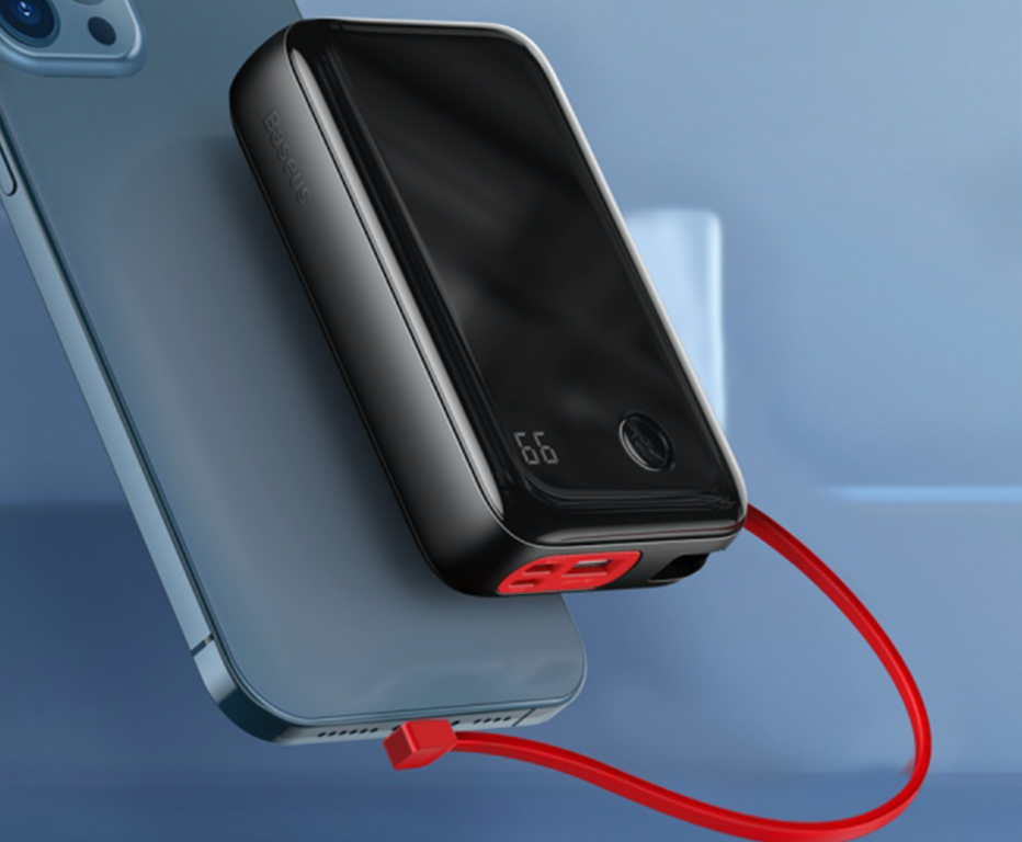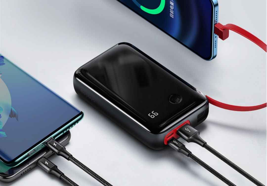 倍思小方数显快充充电宝自带快速充电线,并且拥有丰富的输出接口,可以同时解决三台手机的充电问题。内置20000mAh的电池容量也使得其不仅可以提供快充,还可以提供更长时间的续航支持。