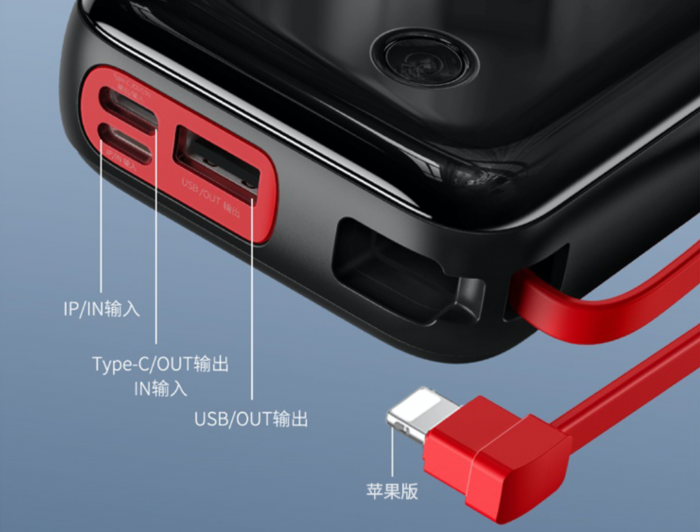 接口丰富也是倍思旗下充电宝的一大特色,最新推出的这款小方数显快充充电宝也继承了这一优良传统。