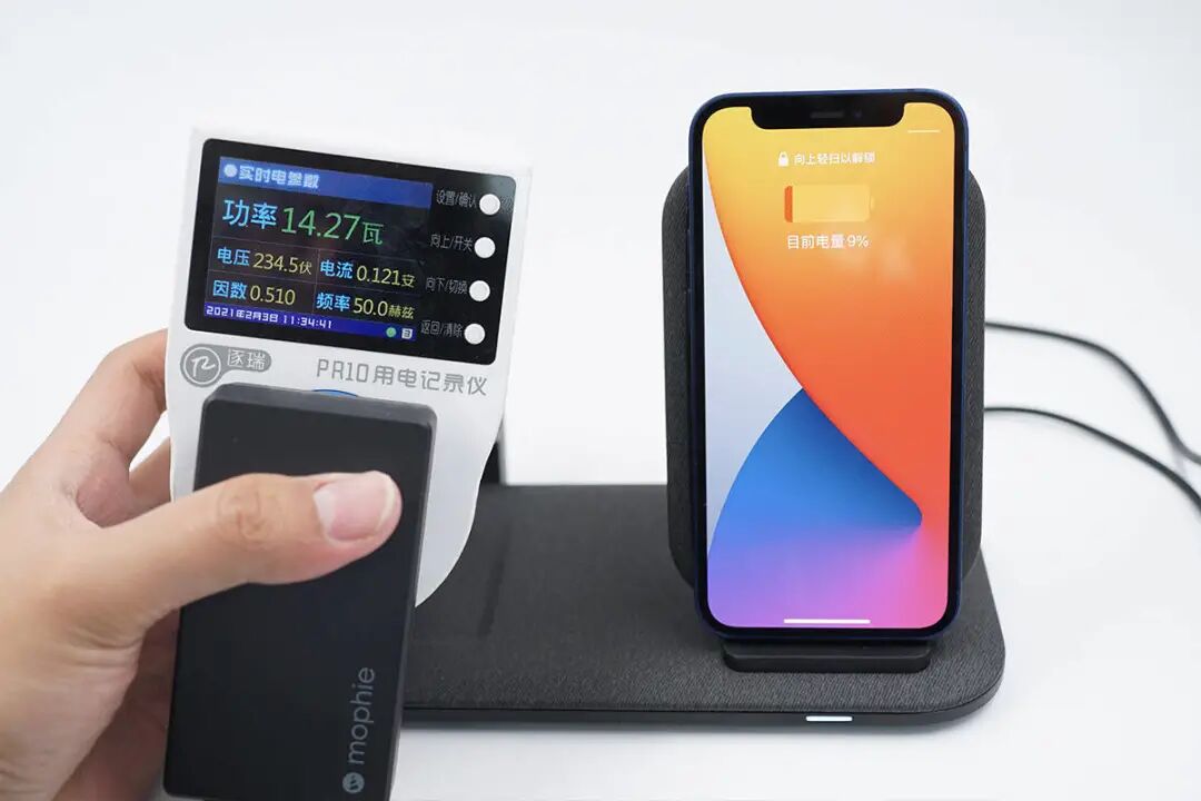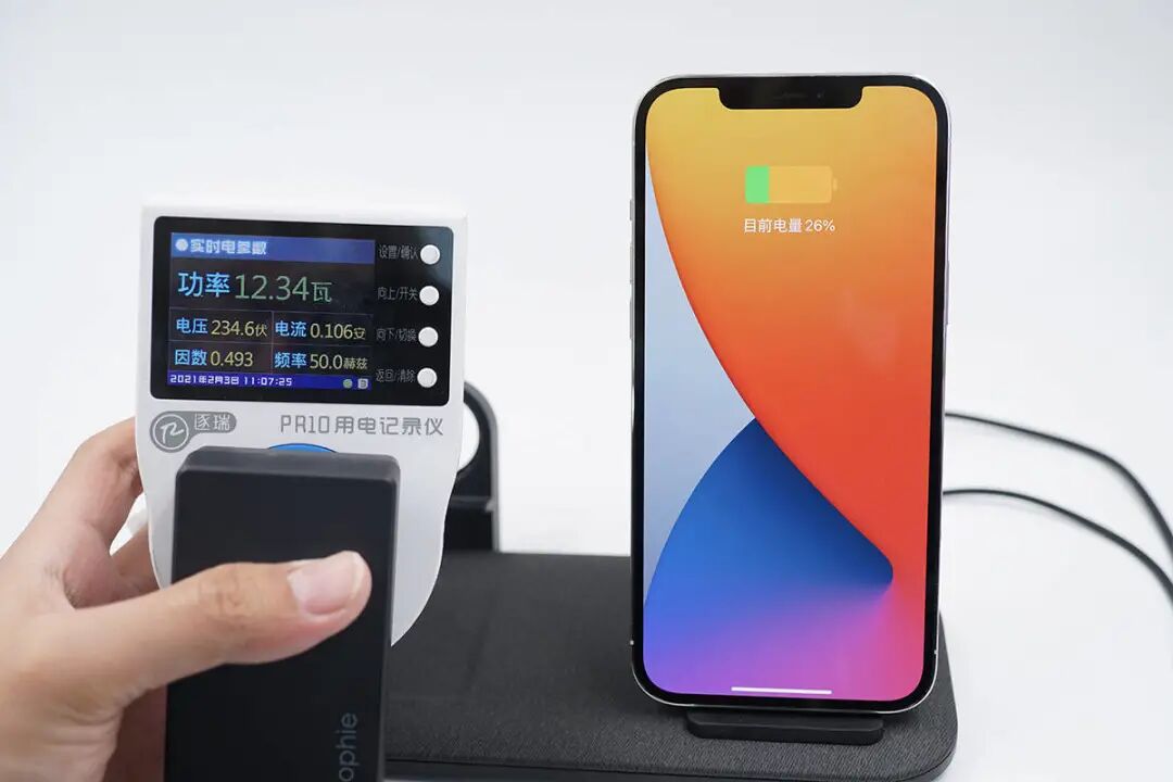 将iPhone 12放上,功率约为12.36W。