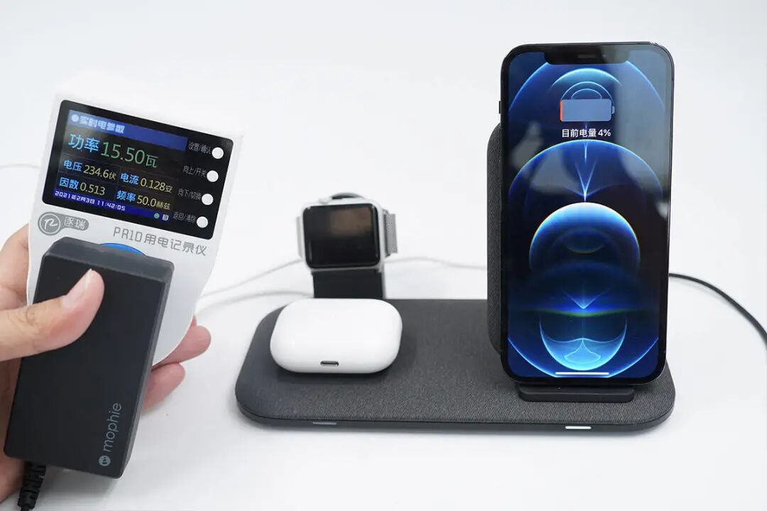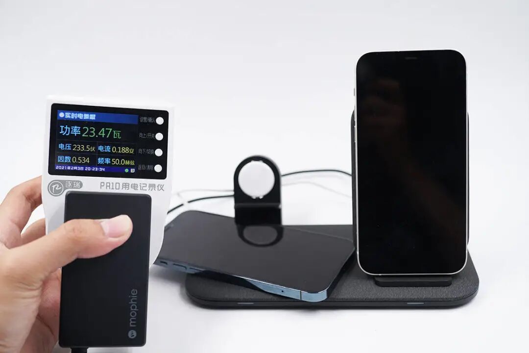 再放上Apple Watch,加上iPhone 12和12 Pro两部手机,功率达到24.61W。