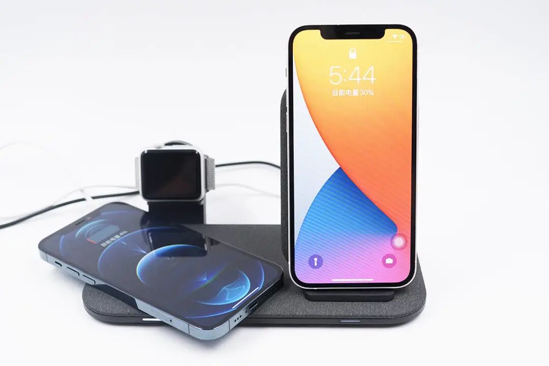 笔者本来有惯性思维,想着三个位置只是各司其位,没想到为AirPods准备的位置也可以为手机充电,将三个设备一起放上去,还真的可以充,算是意外之喜。
