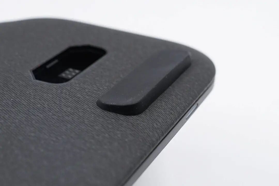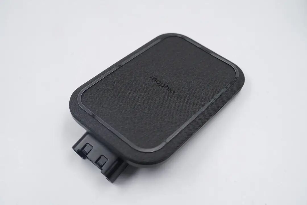 然后是手机充电模块,整体也是布艺覆盖,中心处为mophie的logo,边缘处为一圈脚垫,起到防滑作用。