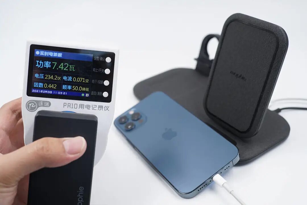 配合苹果原装线材为iPhone 12 Pro充电,功率约为7.42W。