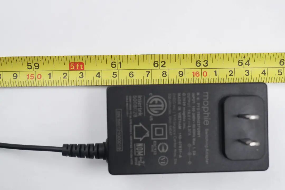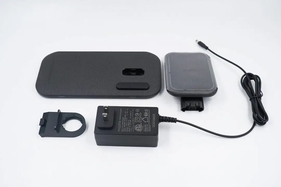 mophie二合一无线充电板搭配的电源适配器和之前的几款并不相同,块头更大一些。