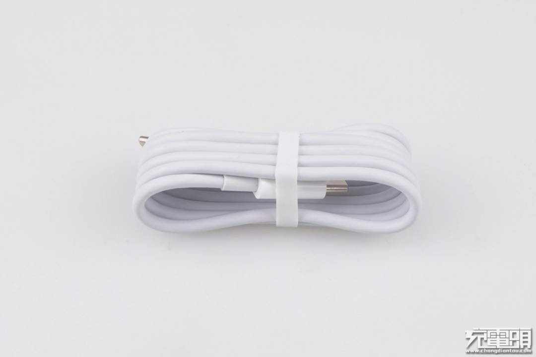 小米65W氮化镓充电器包装内配送了一根数据线,线材使用橡胶扎带规整的捆扎起来,接头规格为 USB-C to USB-C。