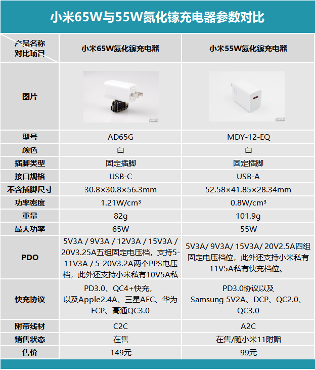 看到这里,大家对小米这两款氮化镓充电器都有了一定认识,孰优孰劣已经分明。最后我们再说一下价格,65W售价为149元,55W售价为99元。