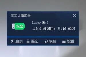 直接连接电脑的USB-A接口,电脑端直接识别出来了Lexar雷克沙 M45 U盘,无需任何驱动,总容量为116.03GB,这是操作系统识别与硬件设备生产厂商两者容量计算公式上的不同所致,计算方式为128*1000*1000*1000/1024/1024/1024,容量为行业正常数值。