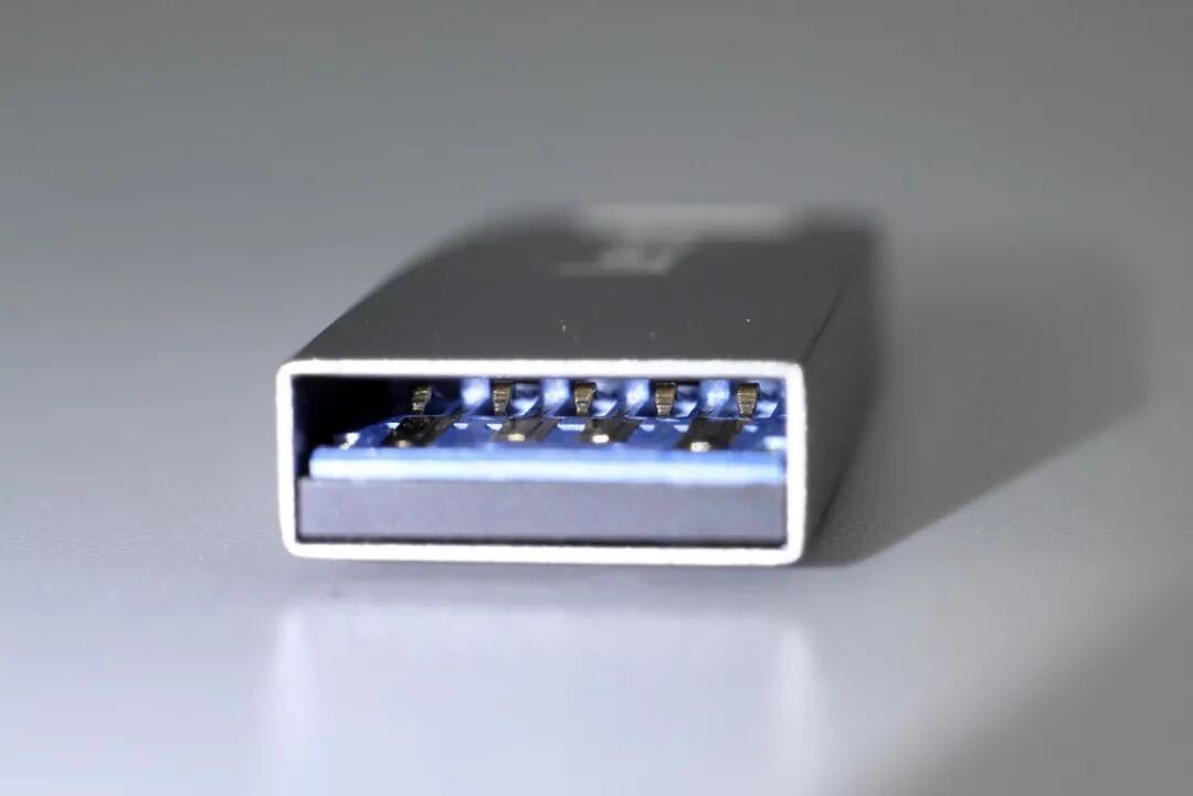 U盘的接口内部,底座内侧五个触点外侧四个触点共计九个触点,符合USB3.1的数量标准。