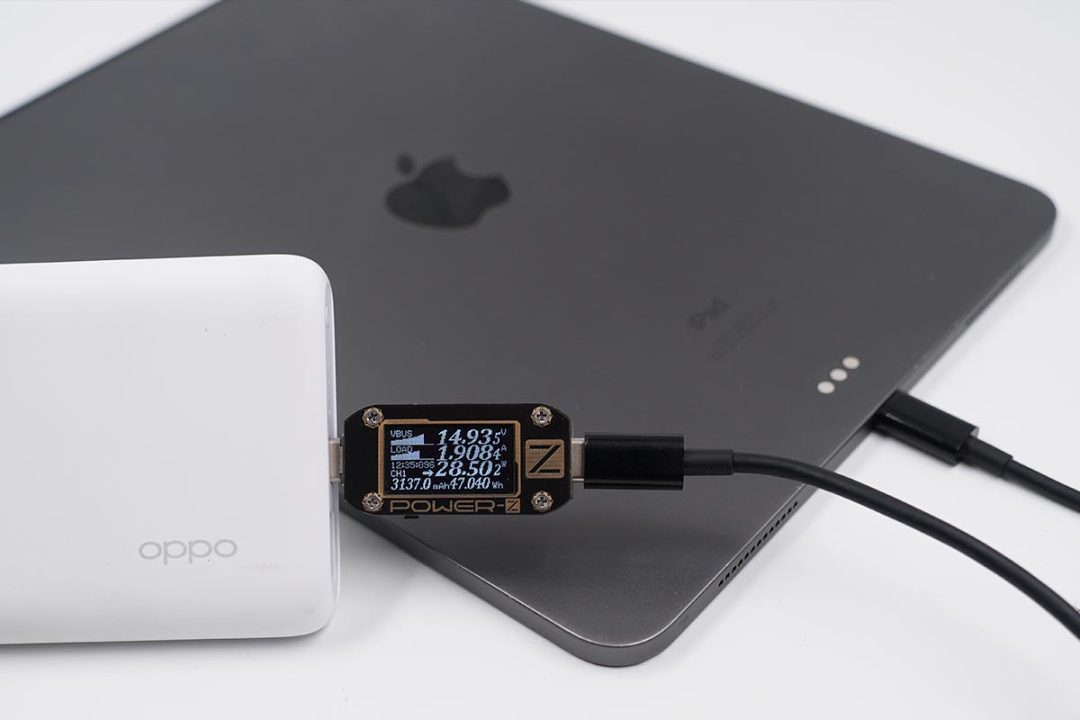使用USB-C为iPad Pro充电,功率为14.93V 1.90A 28.50W,此时处于PD大功率充电状态。