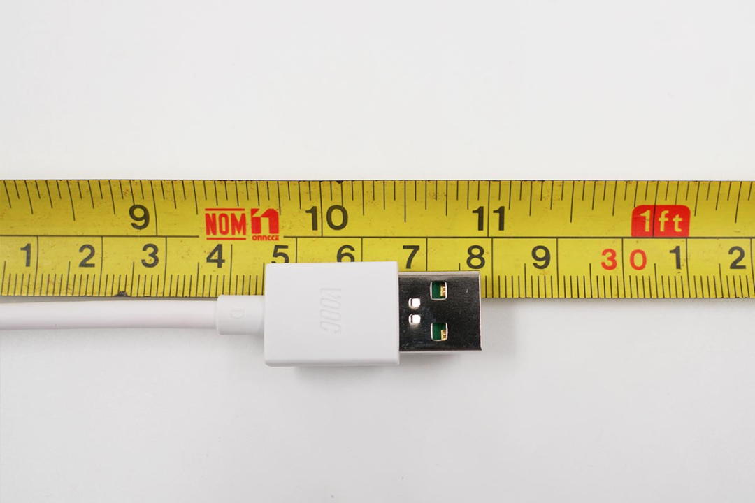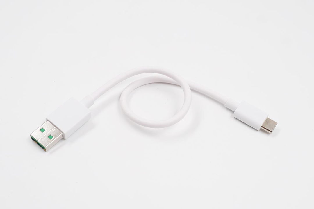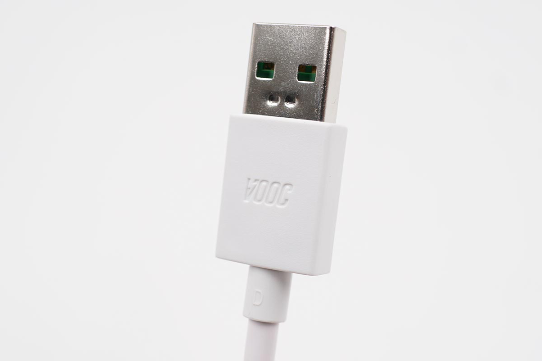 USB-A的端子头的位置带有VOOC的标识,线材也是支持VOOC闪充的快充线。