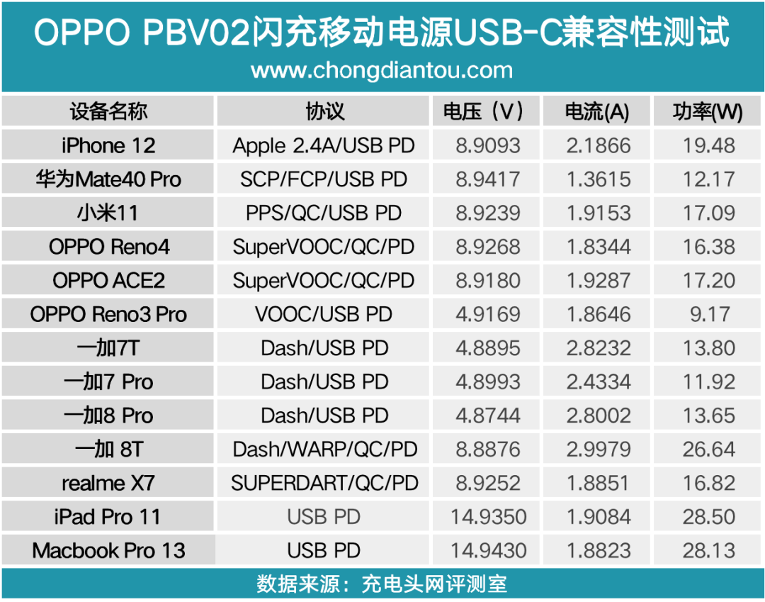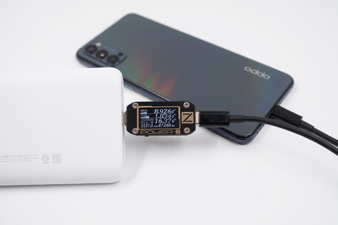 USB-C支持通用的PD快充,对于大部分设备都可以提供PD快充,由于OPPO Reno 3 Pro仅支持VOOC和5V3A的PD快充,所以功率只有9.17W。