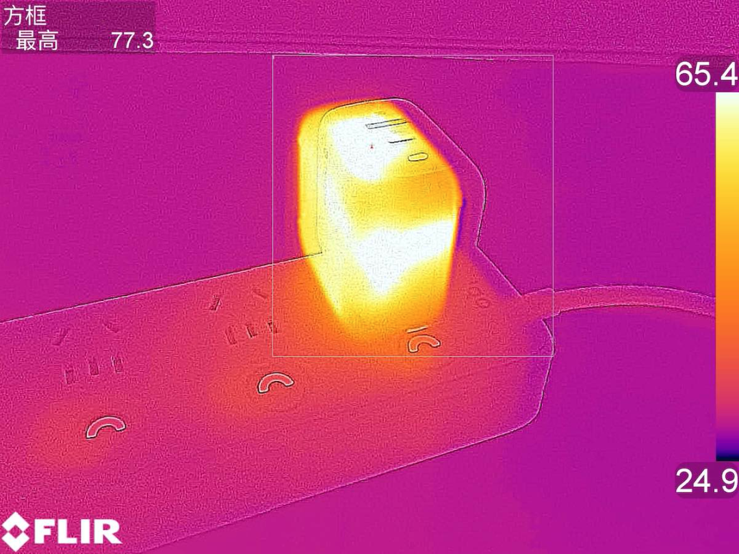 翻转至另一侧,最高温度为77.3℃,温升61.6℃。