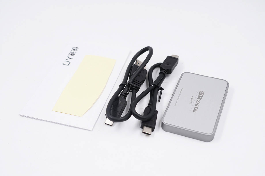 直接打开包装盒,除了固态硬盘和说明书之外还附带了双USB-C线材和USB-A to USB-C线材。